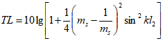 其中TL是消聲量,單位dB, ms=S2/S1=S2/S3稱為消聲器擴(kuò)張比,l2為擴(kuò)張室長(zhǎng)度。S1、S3為管道截面積,S2擴(kuò)張室截面積。